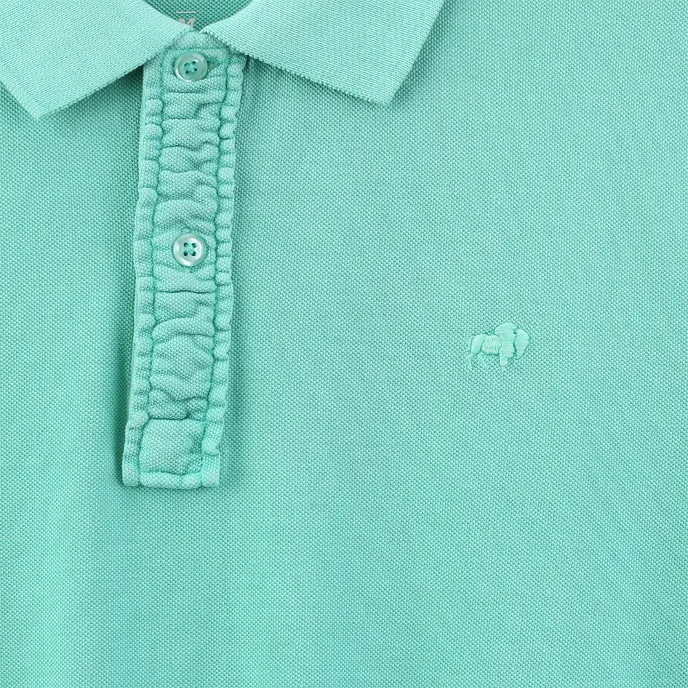 This men’s polo shirt is 100% cotton pique material, with a fabric weight of around 190g. 100%cotton pique polo shirts have excellent quality characteristics, mainly reflected in their breathability, moisture absorption, wash resistance, soft hand feel, color fastness, and shape retention. This type of fabric is commonly used to make T-shirts, sportswear, etc., and many big brands’ polo shirts are made of pique fabric. The surface of this fabric is porous, resembling a honeycomb structure, which makes it more breathable, moisture-absorbent, and wash-resistant compared to regular knitted fabrics. This polo shirt is made using garment dyeing process, presenting a unique color effect that enhances the texture and layering of the clothing. In terms of cut, this shirt has a relatively straight design, aiming to provide a comfortable casual wearing experience. It does not fit tightly like a slim-fit T-shirt. Suitable for casual occasions and can also be worn in slightly more formal settings. The placket is specially pleated to add depth to the clothing. The collar and cuffs are made of high-quality ribbed material with good resilience. The brand logo is embroidered on the left chest, positioned to stand out and enhance the brand’s professional image and recognition. The split hem design adds comfort and convenience for the wearer during activities.