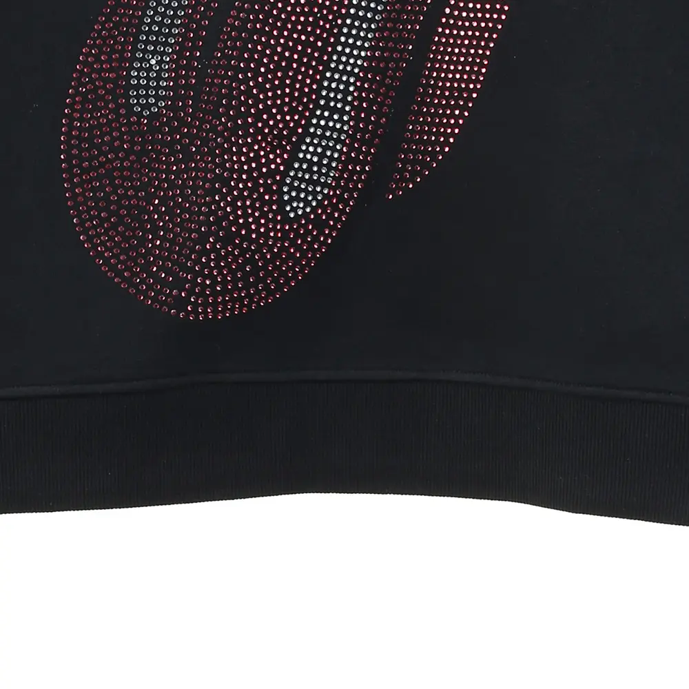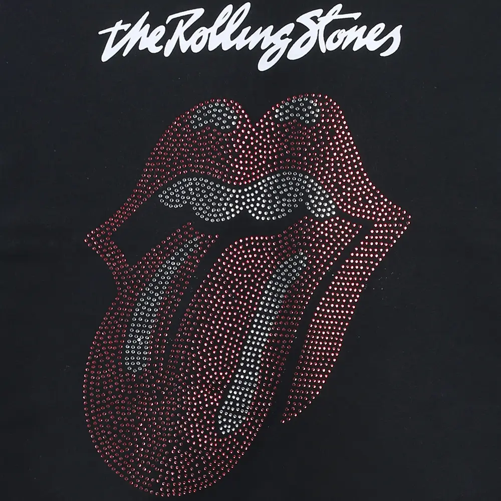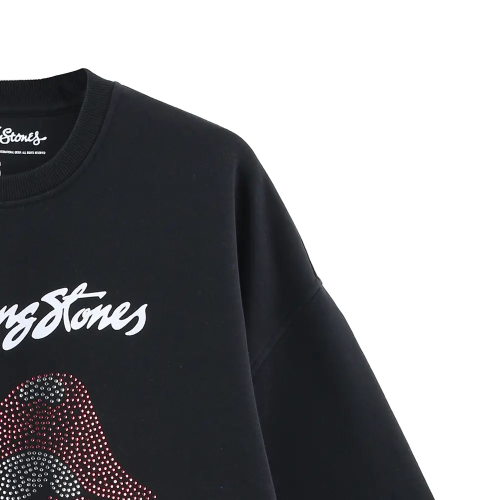 This women’s crew neck sweatshirt is customized for THE ROLLING STONEG. It is a perfect blend of style, comfort and craftsmanship. It is made of high-quality soft fabric, comfortable and close-fitting. The fabric composition is 60% cotton and 40% polyester, and the fabric weight is about 260g per square meter. This sweatshirt has a loose fit and is designed with drop shoulder sleeves.The drop shoulder design adds a modern and casual atmosphere to this sweatshirt. The large body print adopts advanced heat-set rhinestone printing technology, embellished with exquisite rhinestones, carefully inlaid to create a dazzling design. The heat-setting process ensures that the rhinestones are firmly inlaid without worrying about falling off. Our custom women’s heat-set rhinestone drop shoulder sweatshirt is available in a variety of sizes and colors, whether you like classic black or bright colors,We can customize it all for you.The collar, cuffs and hem of the sweatshirt are made of ribbed fabric. The ribbed fabric is designed to provide a better fit and is very comfortable to wear.