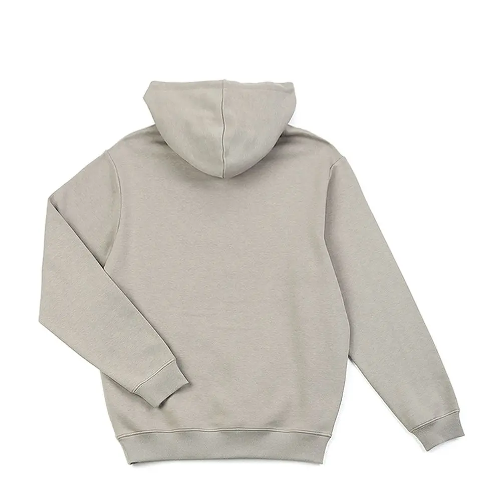 This men’s hoodie is made of 60% cotton and 40% polyester 280gsm fleece fabric. The surface of the fleece is made of 100% cotton and has undergone dehairing treatment, making it smooth and resistant to pilling. At the same time, the polyester component at the bottom of the fabric enhances the plush texture, giving the fabric a thick and fluffy feel. The overall design style of the garment is simple and generous, without excessive decoration, with a loose fit. It features a hood design with a double-layer fabric for added comfort, both for styling and warmth. The front chest print uses transfer thick plate silicone gel material, which has a soft and smooth texture. The garment has a large kangaroo pocket design, which adds to the aesthetics and provides convenience for storage. The overall stitching of the garment is neat without any excess threads, ensuring the quality of the garment. The cuffs and hem are designed with ribbing, providing good elasticity and a nice fit. We can support various colors and fabric customization according to customer requirements, with a very friendly minimum order quantity.