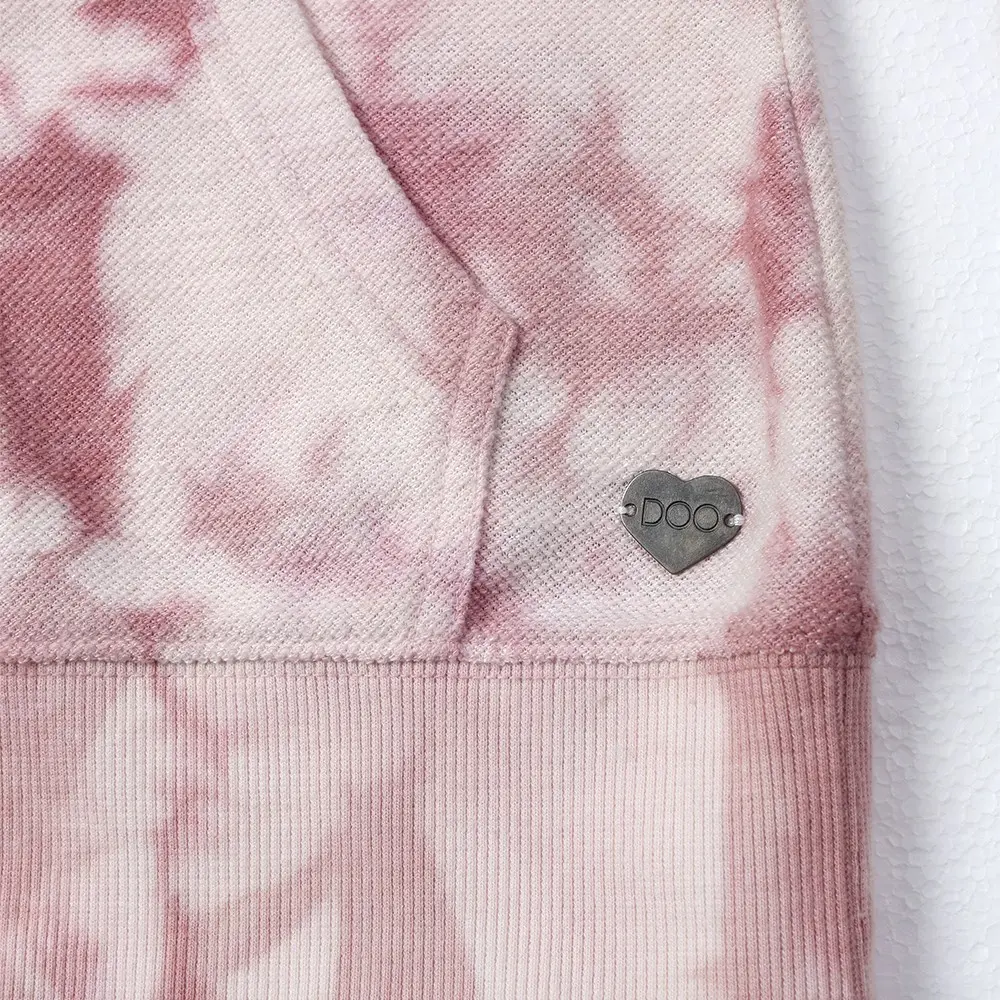 The hoodie’ s pattern is a result of a carefully executed tie-dye method.