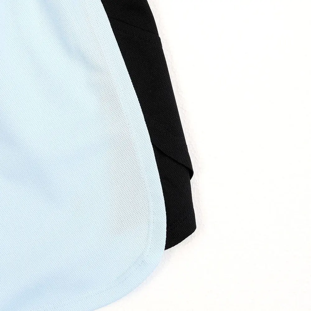 These women’s sports shorts are made from 100% polyester fabric with a weight of 170g pique. The fabric is just the right thickness, providing a comfortable fit and good breathability for sports and outdoor activities. The shorts stand out with their bold color-block design, featuring black panels on both sides. The waistband is made with elastic, ensuring a snug and unrestricted fit that allows for freedom of movement. Unlike traditional embroidery, the waistband has raised letters created using jacquard technology, which adds a strong three-dimensional effect and enhances the overall aesthetics of the fabric. Additionally, we offer the option to add the customer’s brand logo on the surface of the shorts, allowing for a customized and branded look. The leg opening is designed with a sporty curve, which not only adds style but also helps accentuate the shape of the legs. Furthermore, the customer’s logo can be added to the leg opening using high-quality heat transfer technology, ensuring a smooth and durable finish that won’t easily peel or fade.