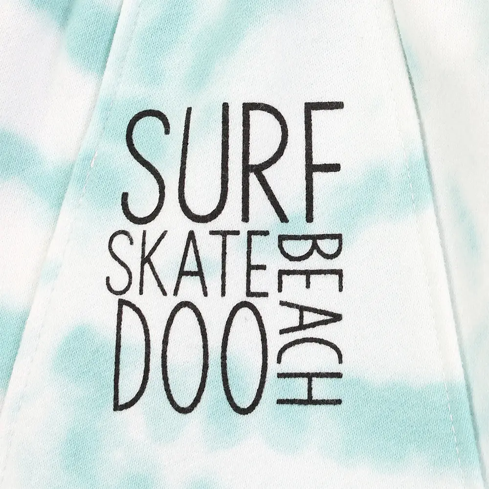 The overall pattern of the garment uses a simulated tie-dye water print technique.