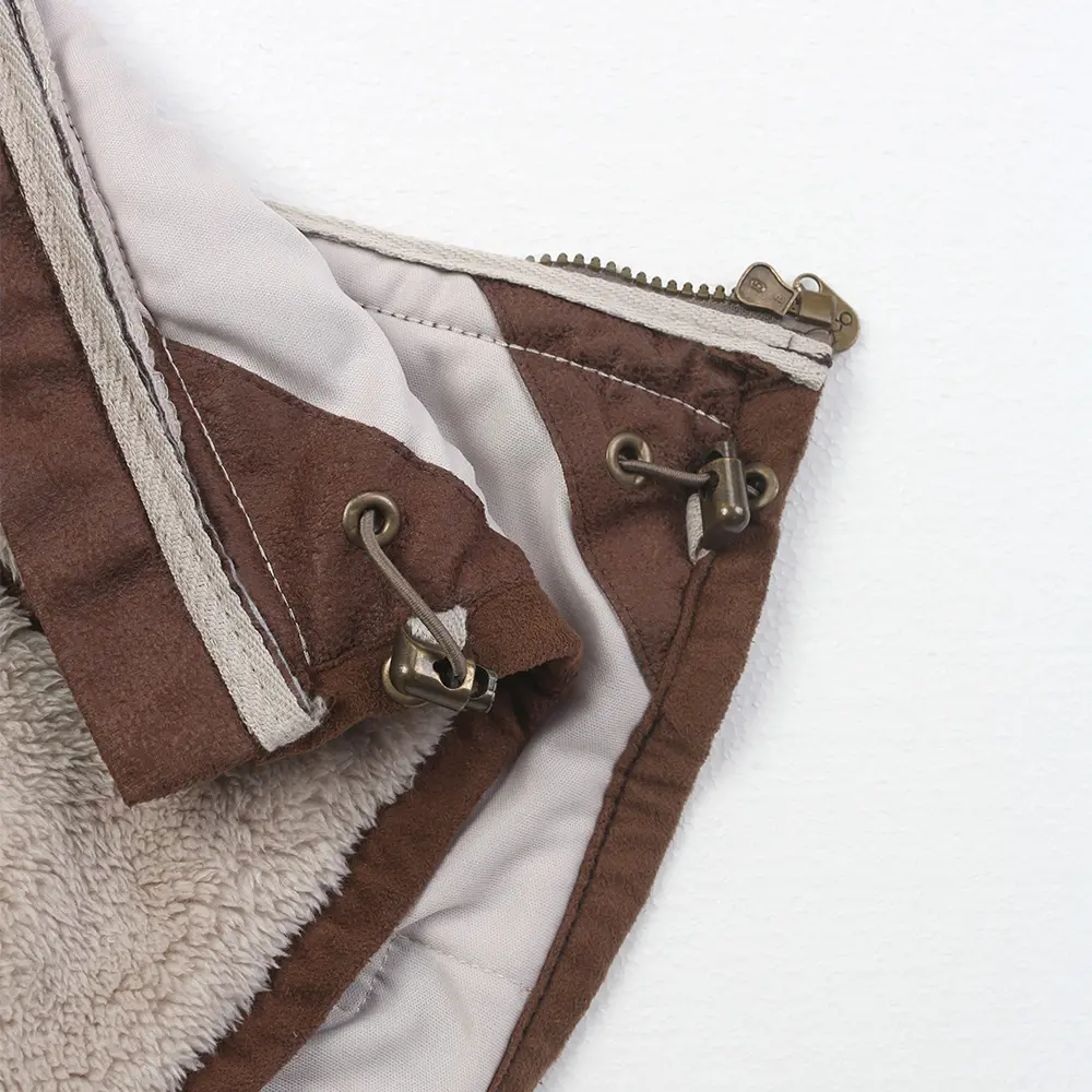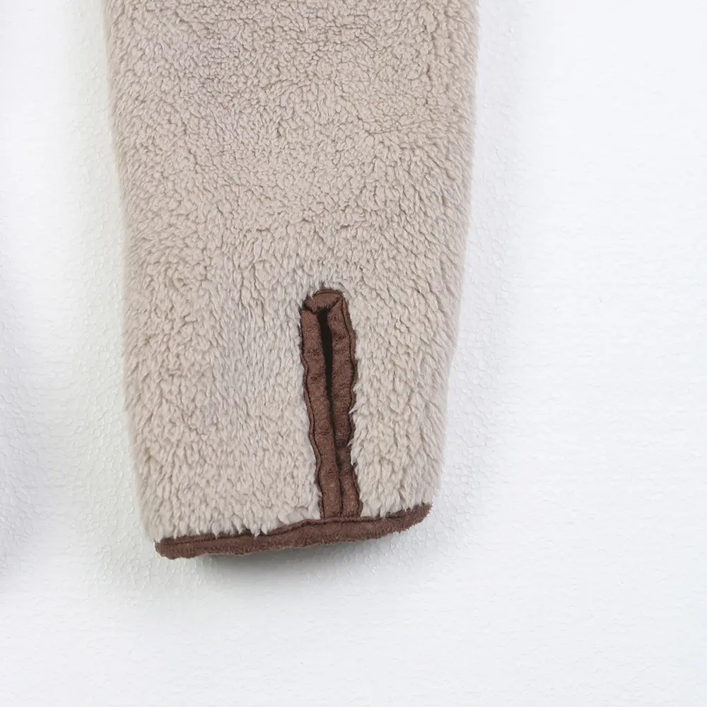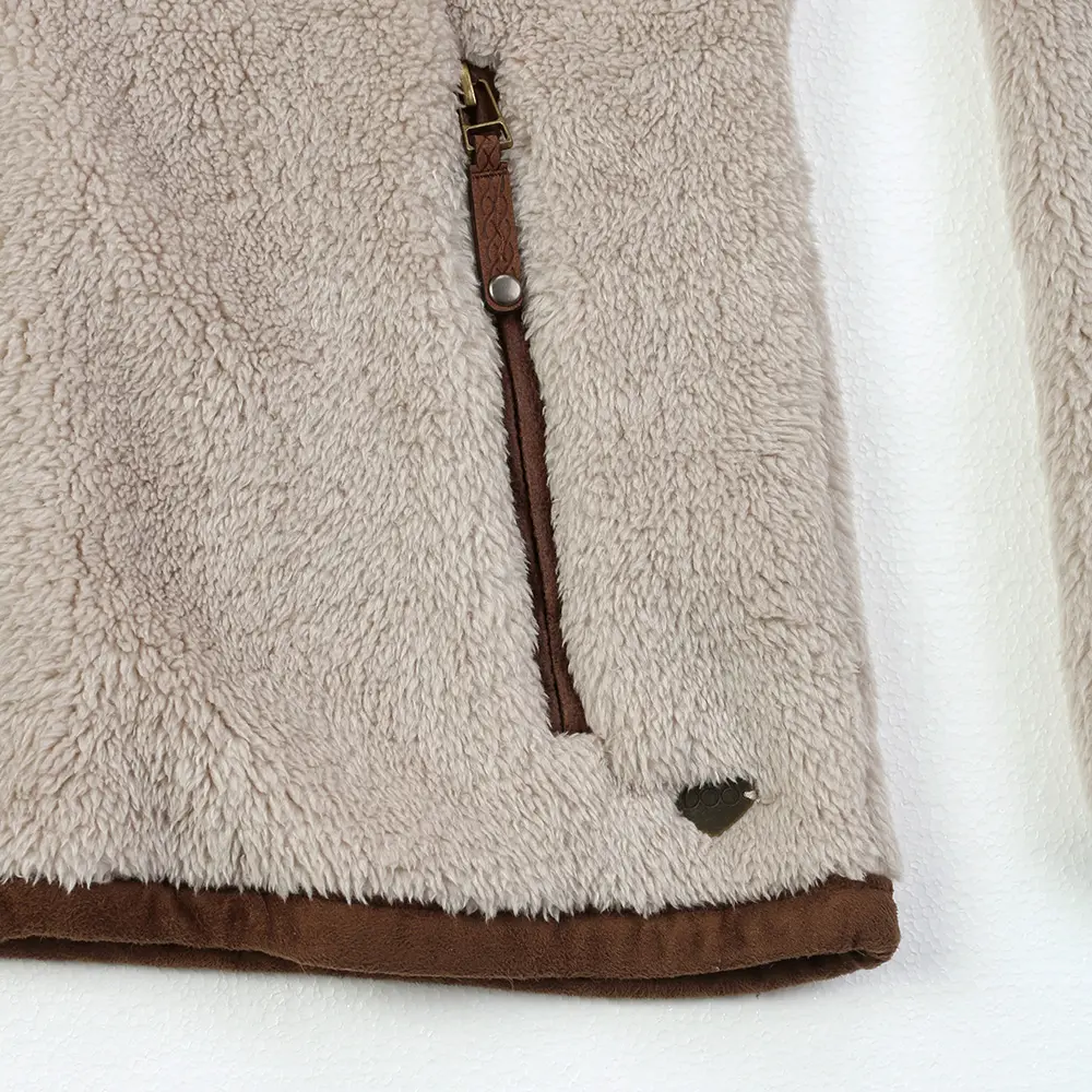 This women’s winter coat is constructed from a comfortable coral fleece, which is made up of 100% recycled polyester .The fabric weight approximately rounds to 280g, indicating a suitable thickness that provides warmth without burdening the wearer with excess weight.