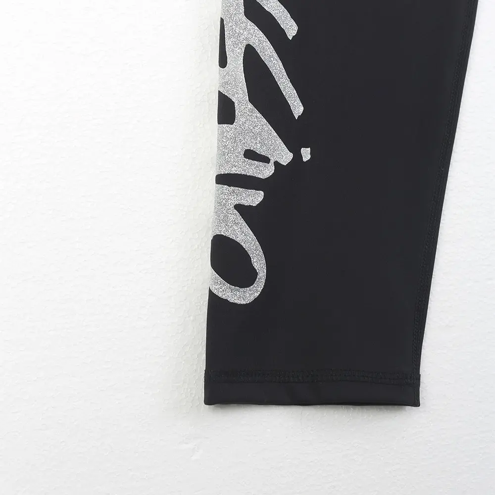 This women’s basic solid color legging perfectly combines simplicity and comfort. Decorated with a brand’s glitter print that matches the pants color, it exudes quality within its simplicity, showcasing the spirit of the brand.