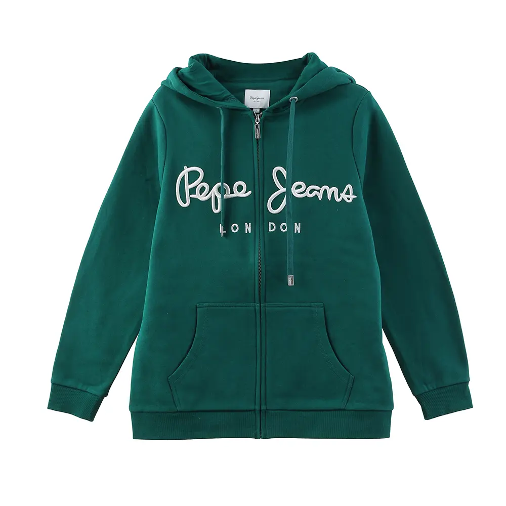 Custom Women 3D Embroidery Metal Zipper Fleece 100% Cotton Hoodies